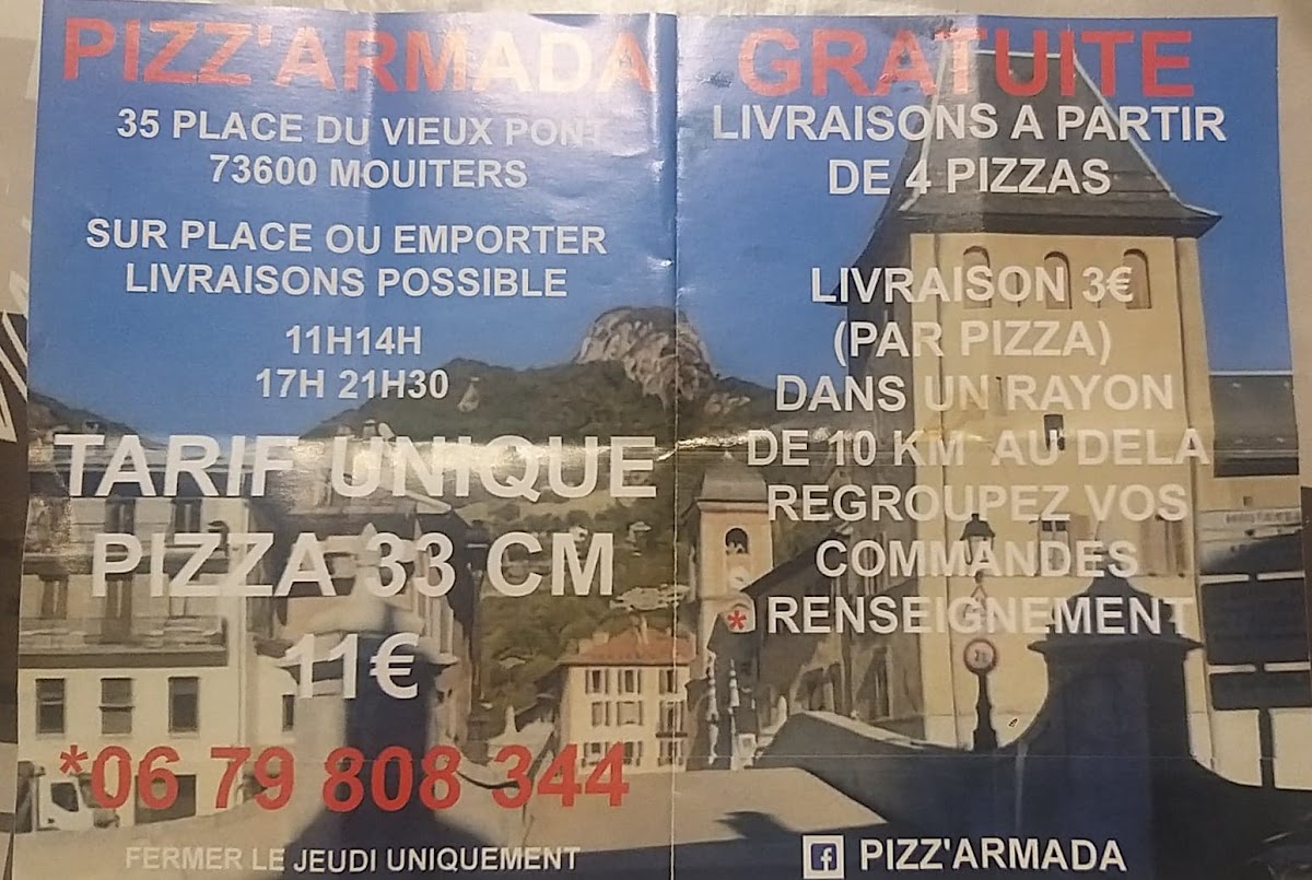 Welcome to PlZZ'ARMADA, a delightful pizza haven nestled in the heart of Moutiers, France. This local gem serves up a mouthwatering array of loaded pizzas that are perfect for both weary travelers and local patrons alike. Customers rave about the mega tasty offerings, highlighting the exceptional quality and flavor of each dish. Whether you choose to dine in or take out, the welcoming atmosphere is paired with friendly, hospitable staff who are ready to cater to your culinary needs, despite any language barriers.